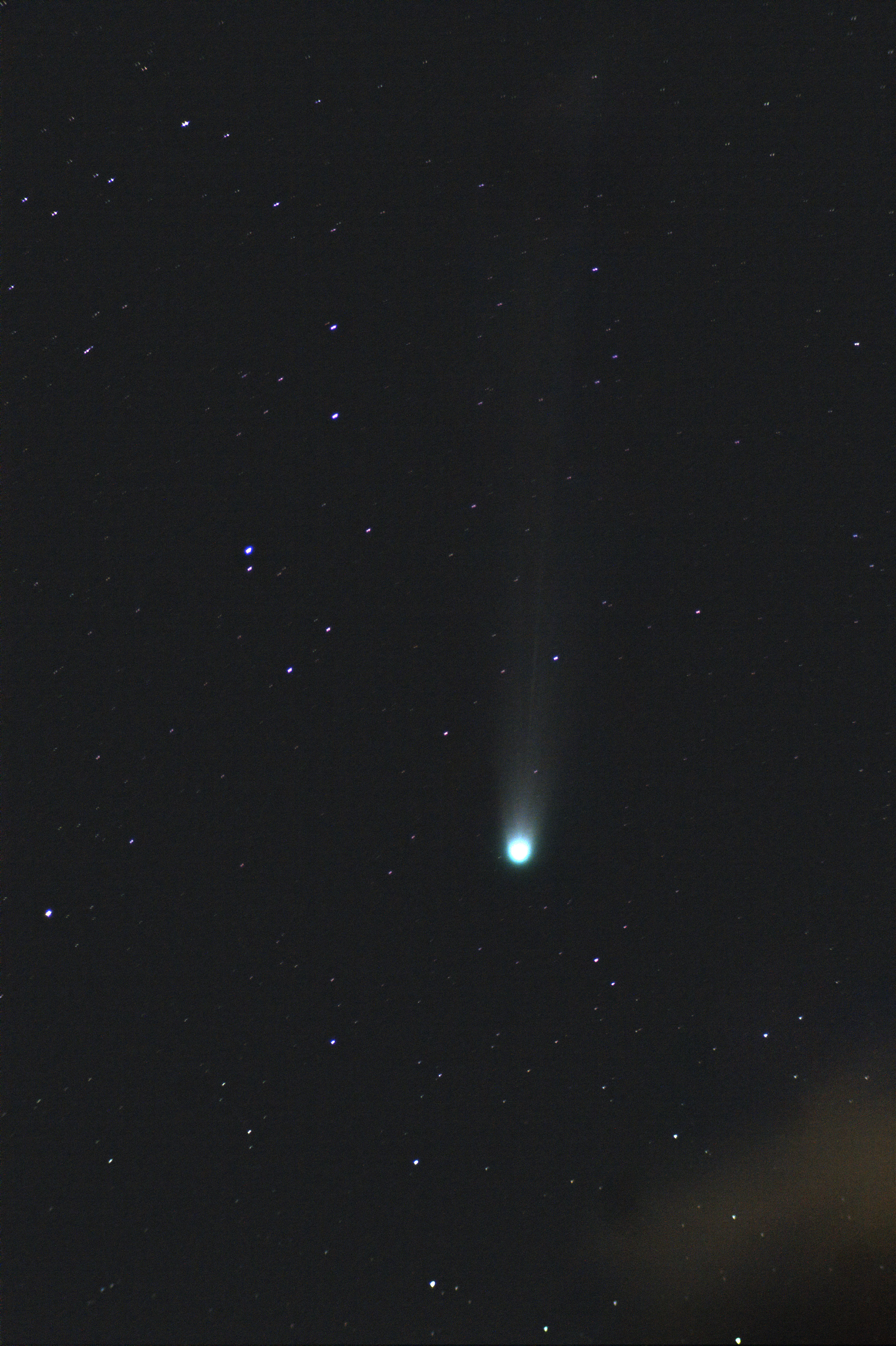 C/2020 F3 (NEOWISE) — ретроградная комета с почти параболической орбитой. Условия наблюдений чуть получше. Уже виден зелёный цвет комы.